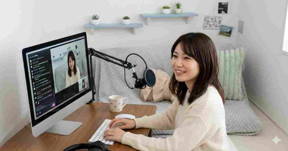 通勤ルームは防音対策がしっかりと施されており、背景も生活感のないシンプルな壁や可愛らしいインテリアに統一されています。